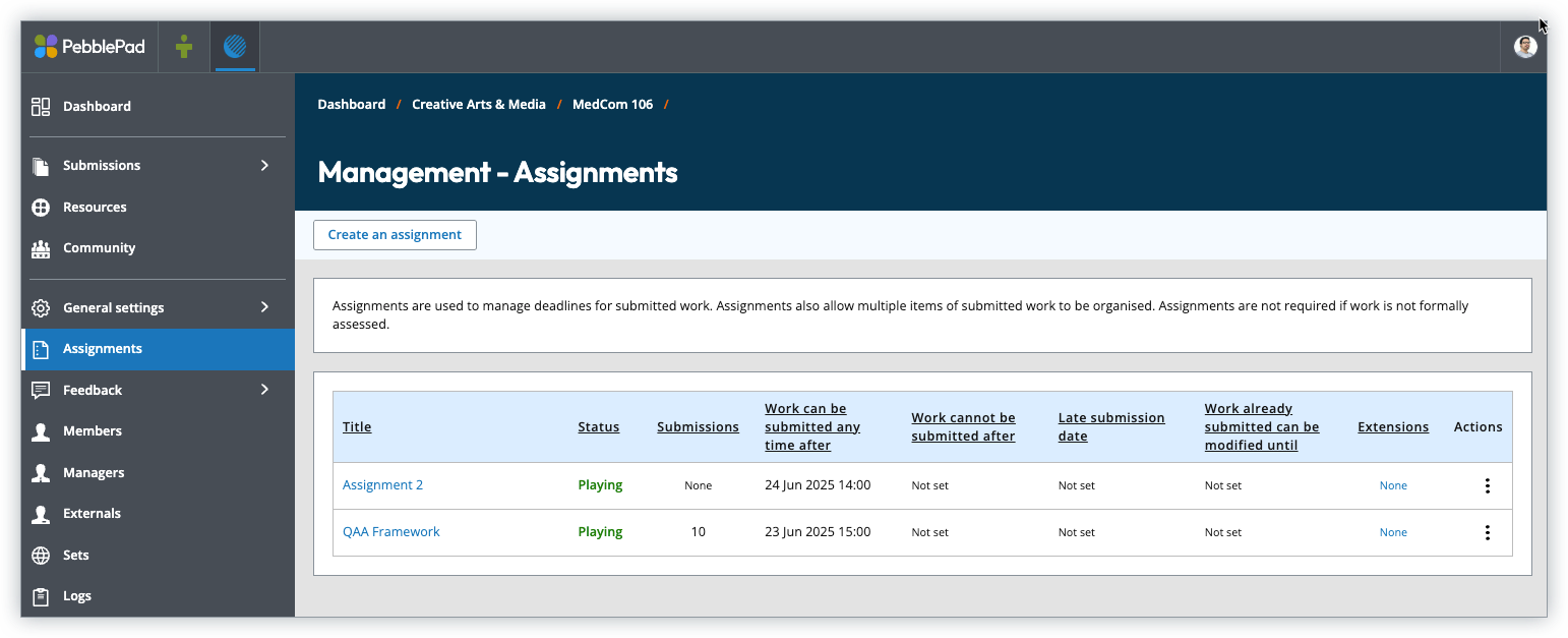 - Click + Create an assignment to add additional assignments