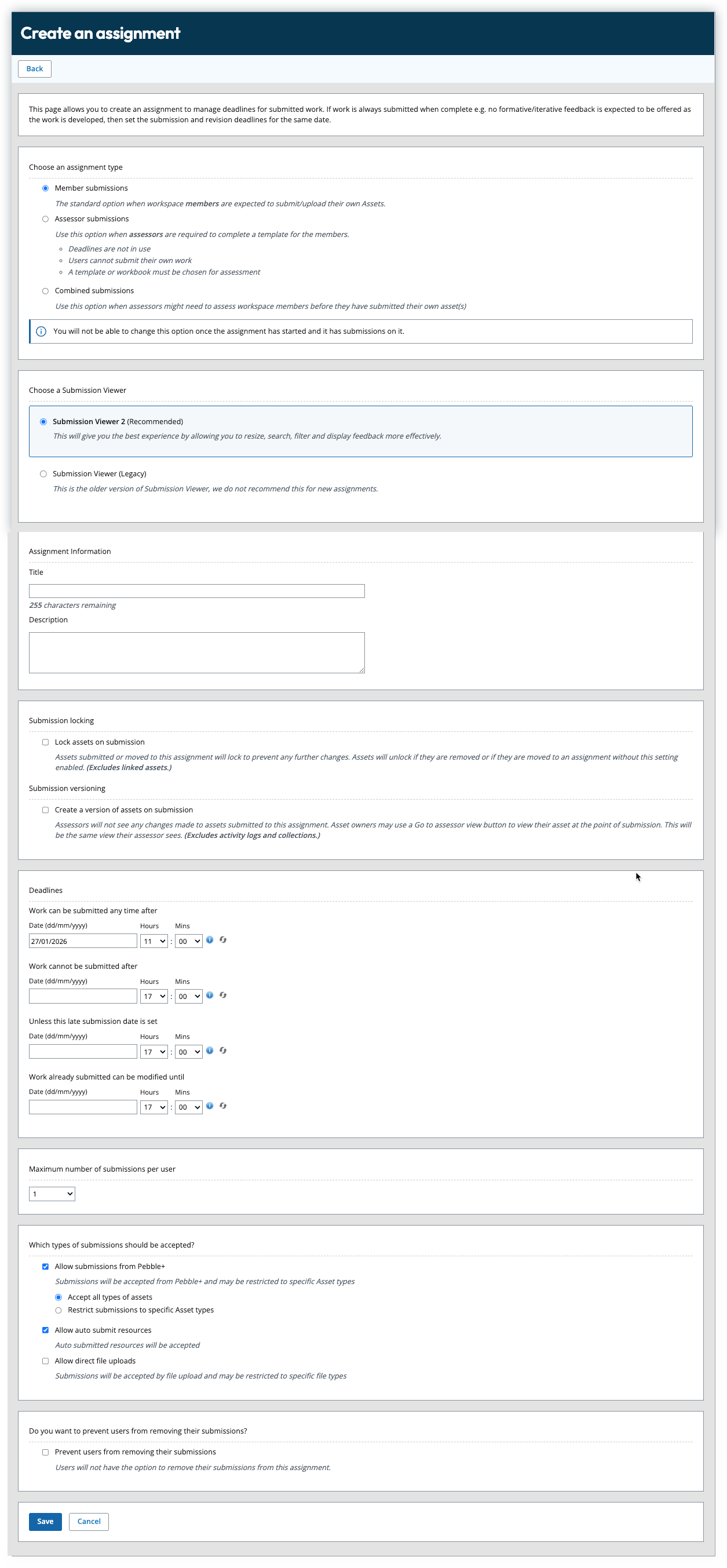 - Submit after - no submissions can be shared after this date is reached (unless below).