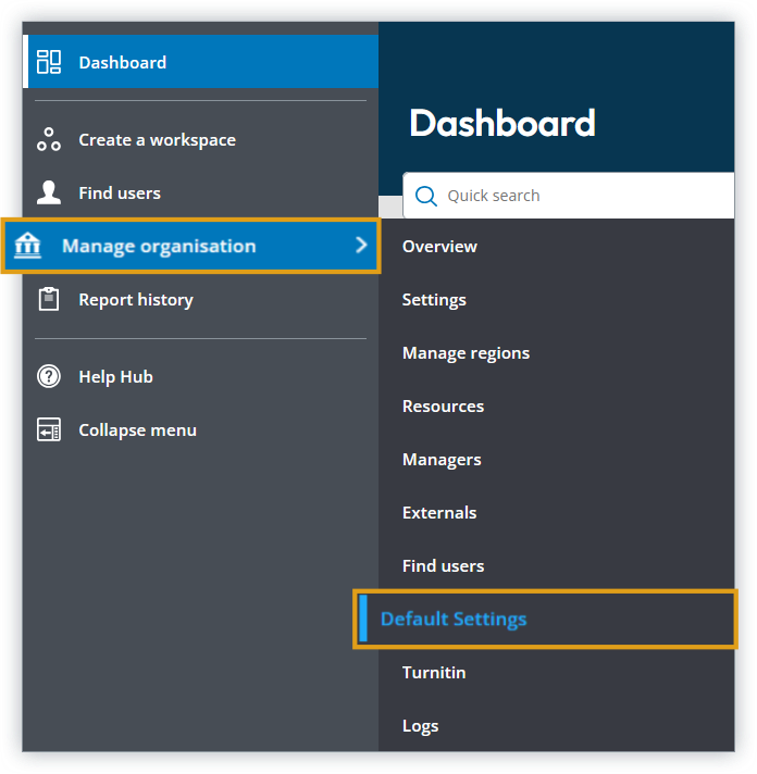 3. Hover your cursor over Default Settings on the ATLAS navigation menu,