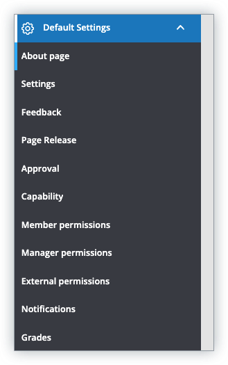 3. A new sub menu will appear in the ATLAS navigation menu for the various groups of default settings.