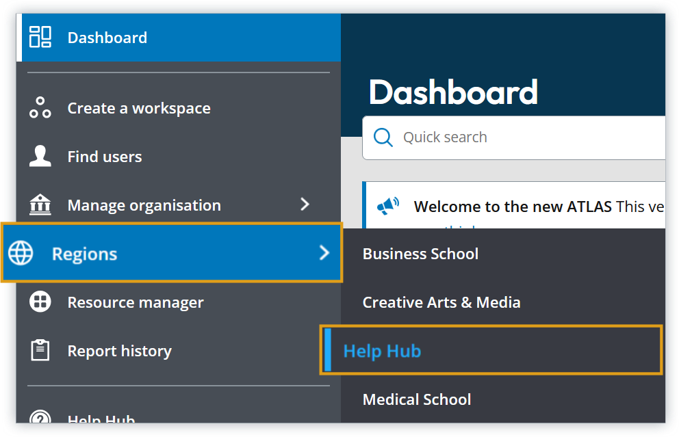 1. From the ATLAS dashboard, hover your cursor over Regions on the ATLAS navigation menu,