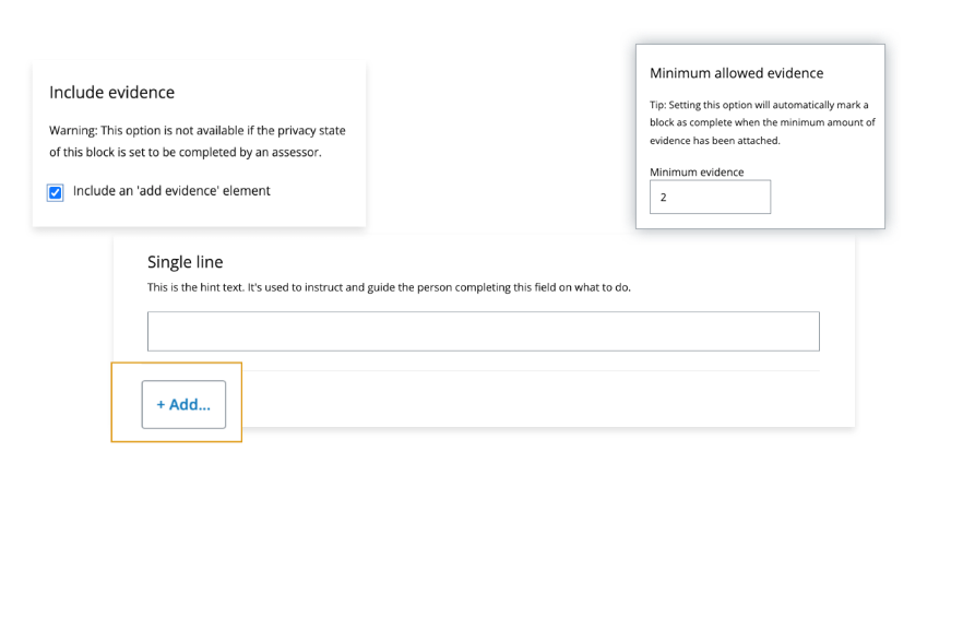 A block is visible to all roles in all versions of the asset. Unticking this option will remove hint fields for assessor view in ATLAS, and published view - e.g. shared with people or the web.