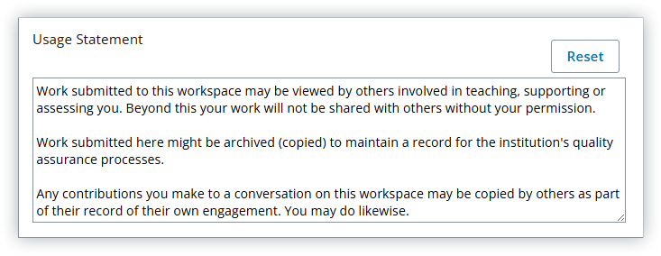 Where Turnitin is enabled, a separate usage statement is shown to learners, and can be amended here.