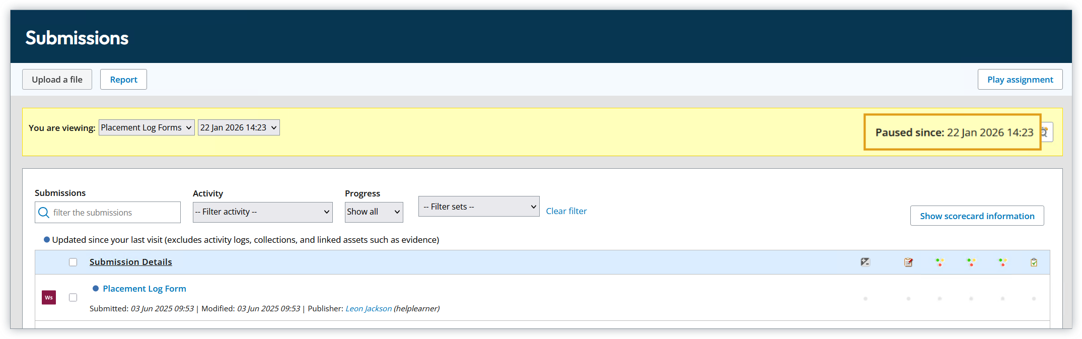 Pausing an assignment will temporarily halt the continuous synchronisation between the learner's asset version and the submitted workspace version.