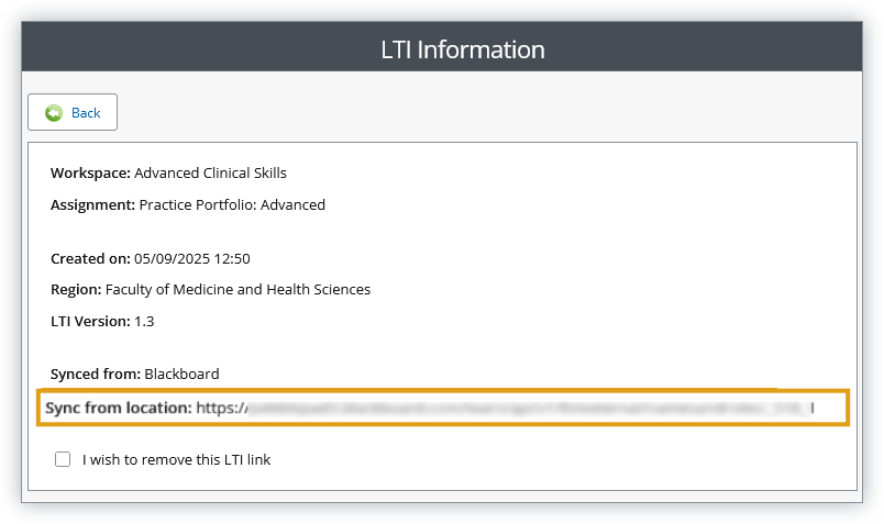 - Tick 'I wish to remove this LTI link'