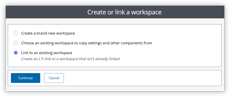 As a workspace can only be linked to one course at a time, only unlinked workspaces will be selectable.