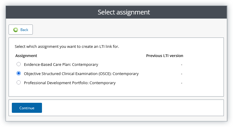 - (For multiple assignments) Select the assignment and click Continue
