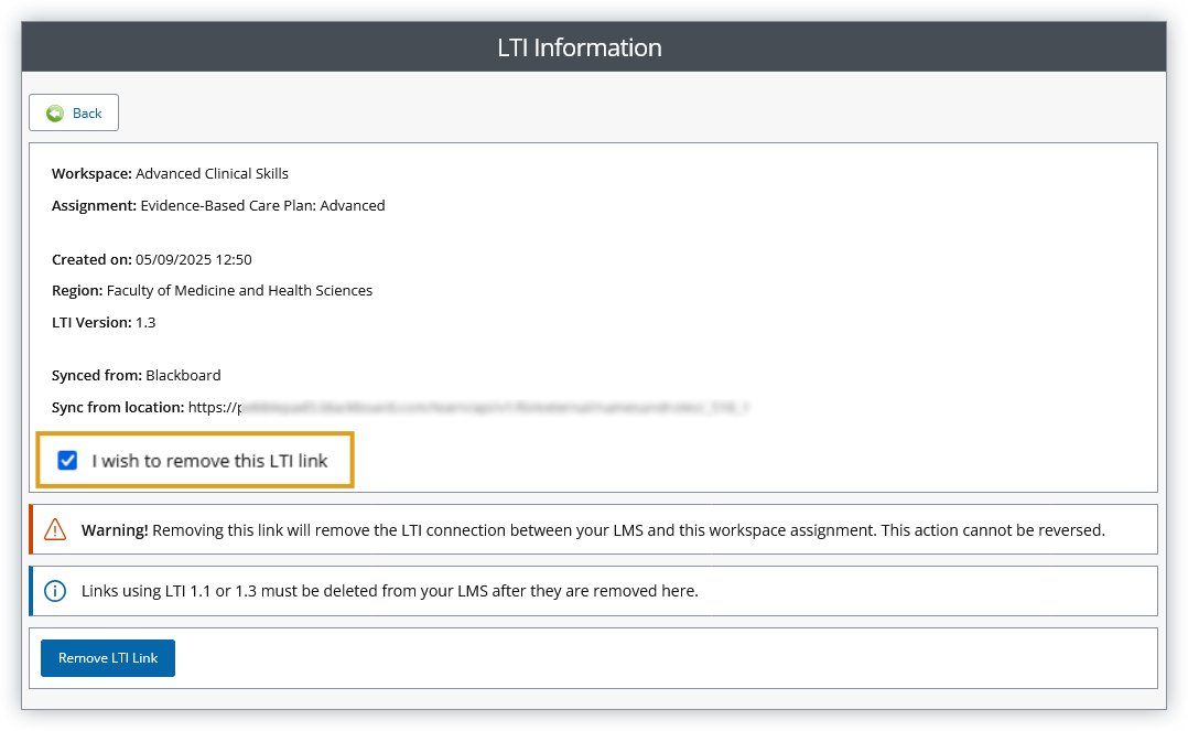- Click Remove LTI Link
